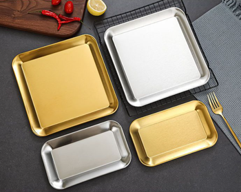 Assiettes rectangulaires en acier inoxydable de huit tailles Plateau de service en acier inoxydable Plateau de service à dessert aux fruits secs de haute qualité