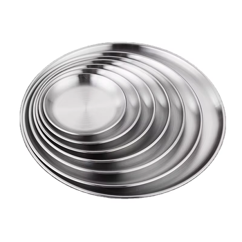 5 boyutları paslanmaz çelik servis tepsisi restoran yemek tabağı paslanmaz çelik yuvarlak tabak barbekü piknik ve büfe için uygun